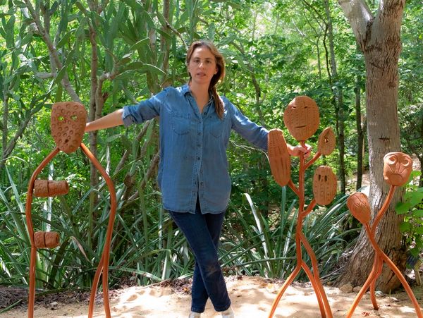 Grupo de 9 esculturas de barro y acero instaladas de manera permanente en el Jardín Botánico de Puerto Escondido (Parte de la Universidad UMAR de Oaxaca).